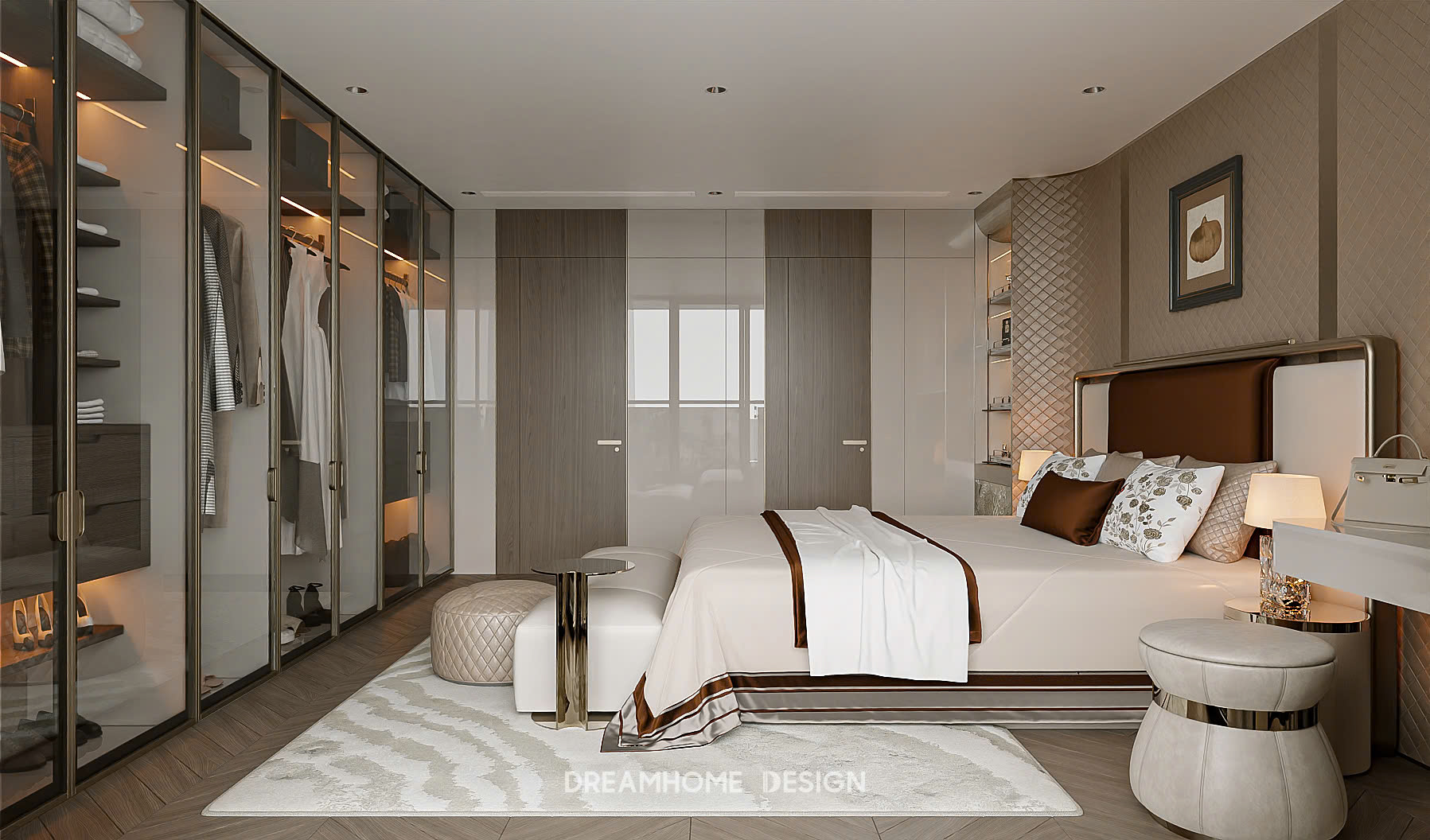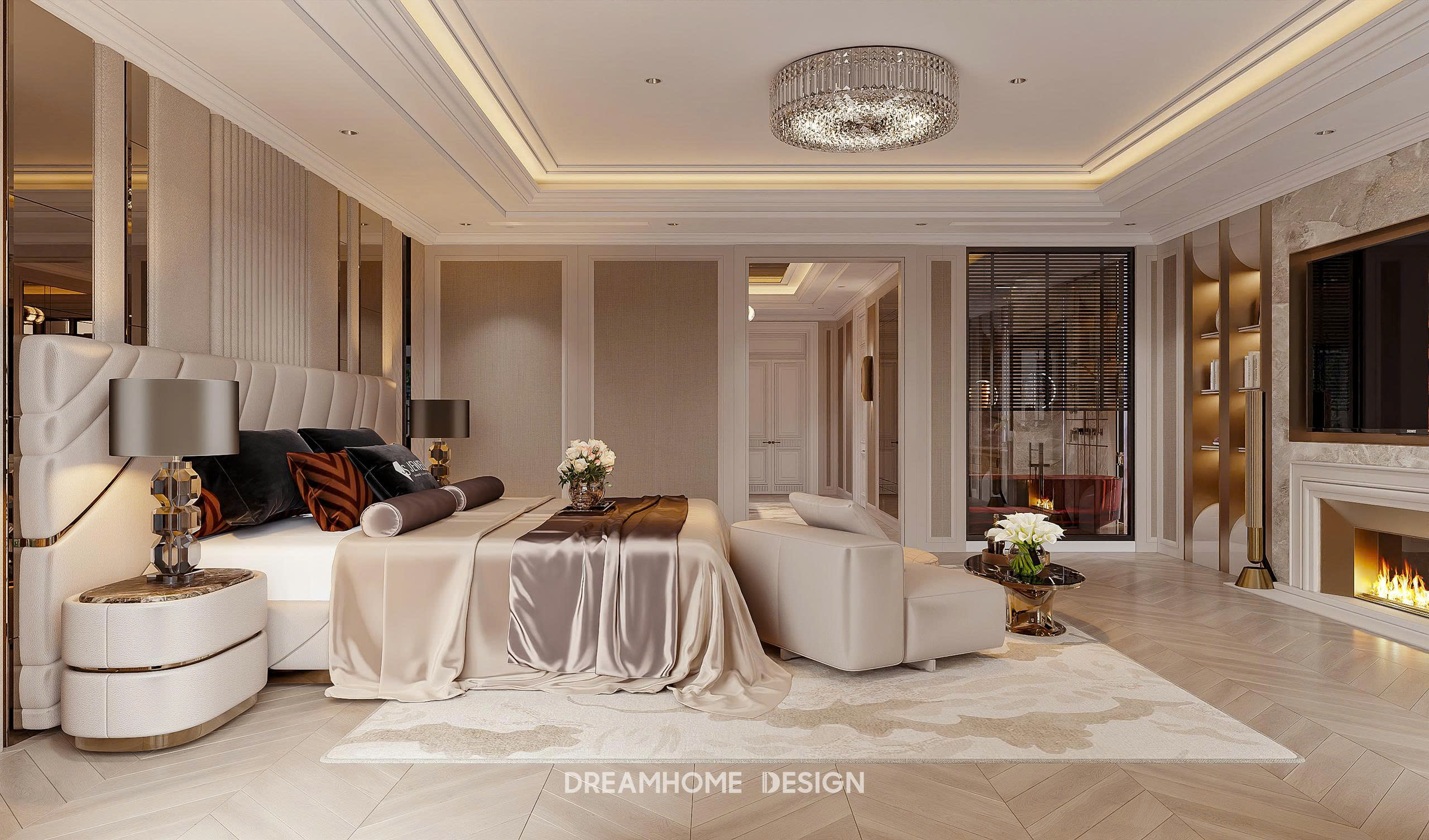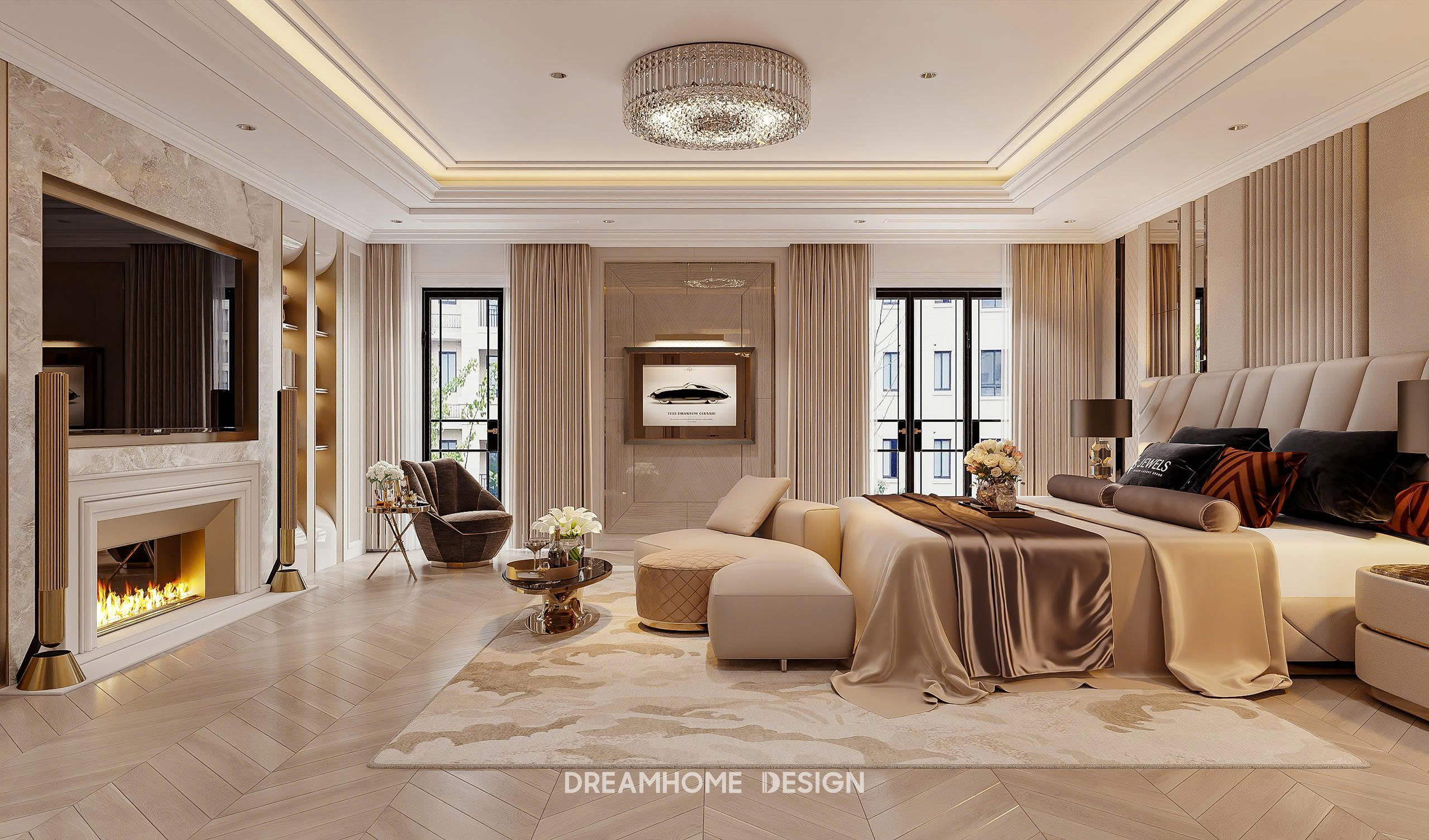 Không khí sang trọng của một phòng ngủ master thượng lưu còn đến từ sự tinh tế trong cách phối màu và bố cục. Tone màu trung tính như kem, be, trắng, nâu gỗ… luôn được ưu ái vì mang đến cảm giác yên bình và dễ chịu. Đường nét thiết kế gọn gàng, chỉn chu, hạn chế chi tiết thừa để không gian thoáng và sang theo đúng tinh thần “ít nhưng tinh”. Một vài điểm nhấn như tranh nghệ thuật, bình gốm, đèn trang trí hoặc một chiếc ghế thư giãn hướng ra cửa kính sẽ tạo nên cá tính riêng nhưng vẫn giữ được sự cân bằng tổng thể. Sự sang trọng trong phòng ngủ master không nằm ở việc phô diễn, mà là cảm giác “rất vừa đủ” – đủ tinh tế để đẹp, đủ yên bình để nghỉ ngơi, đủ sâu lắng để chạm đến cảm xúc.