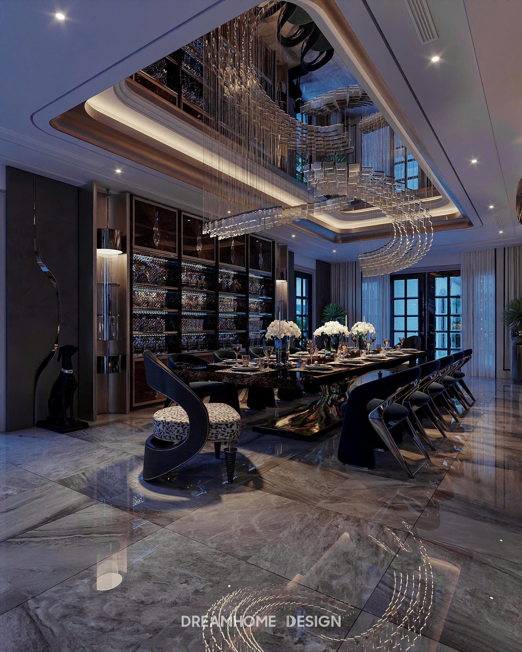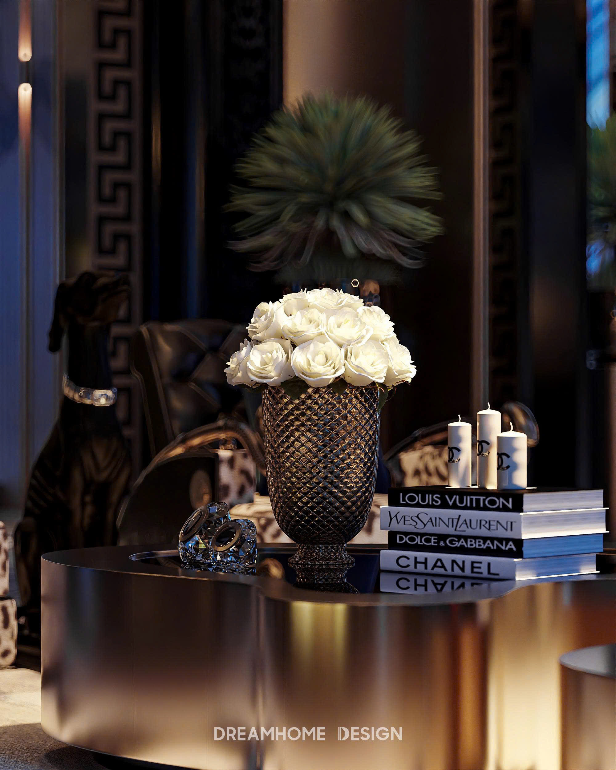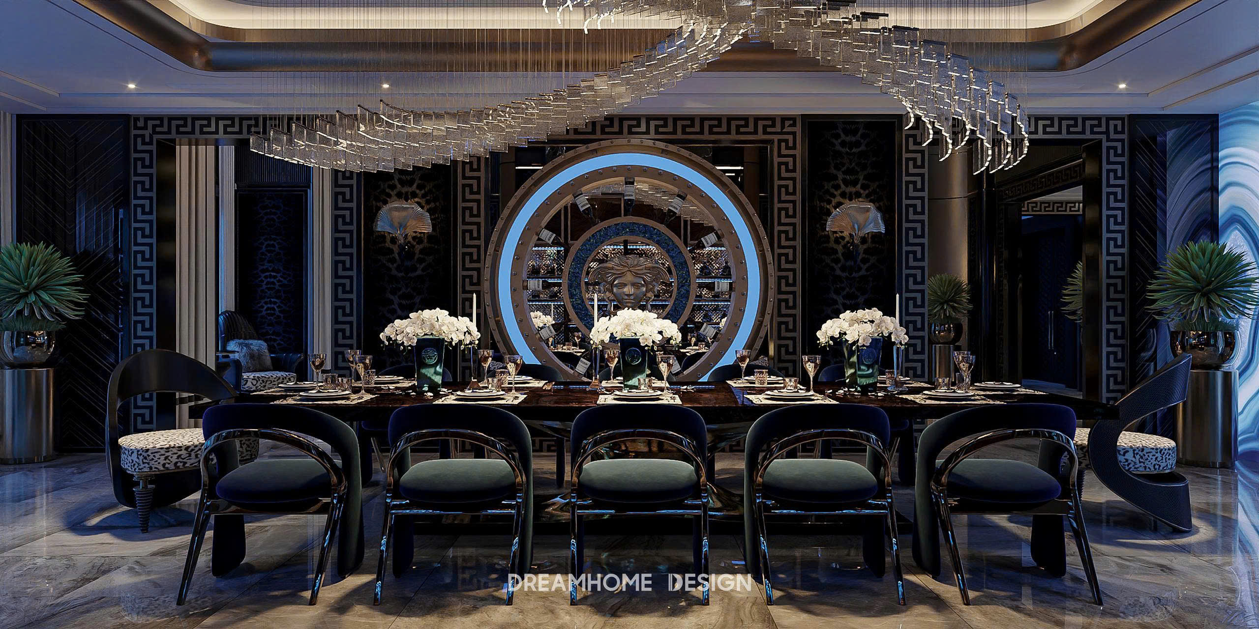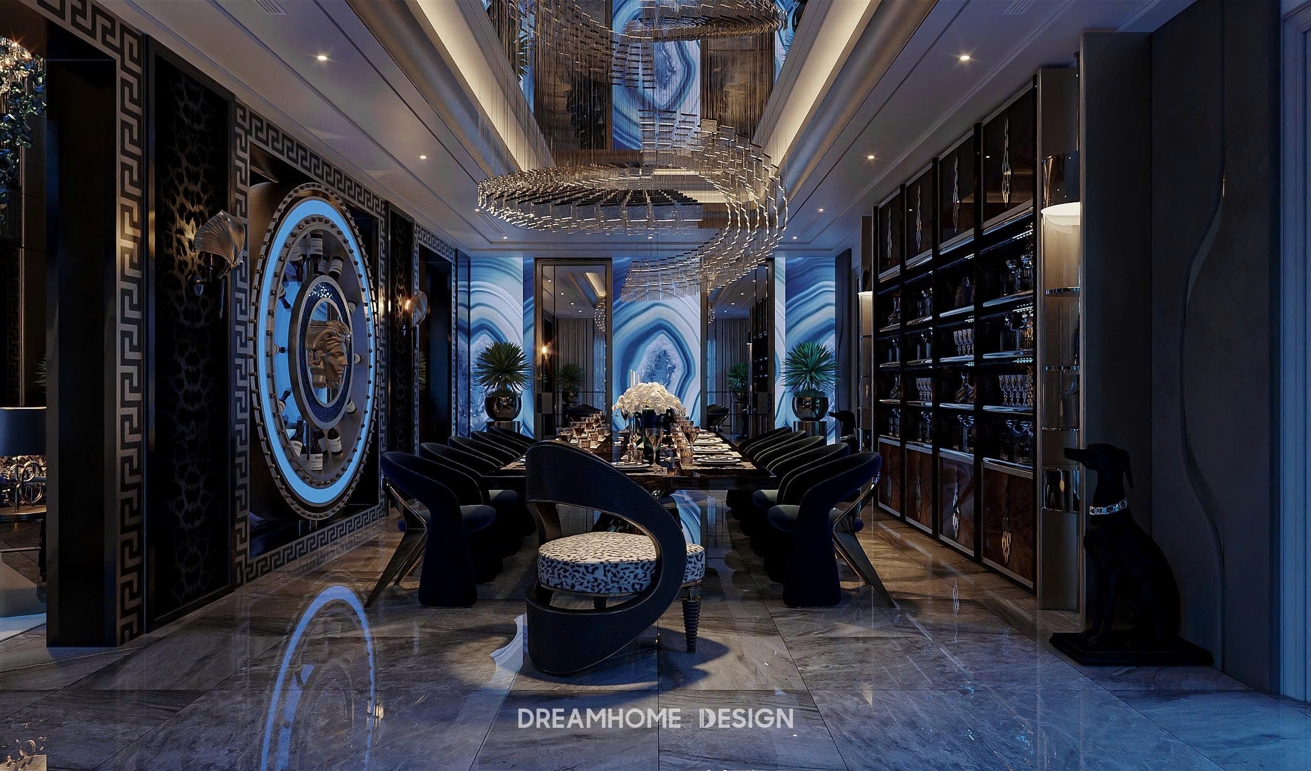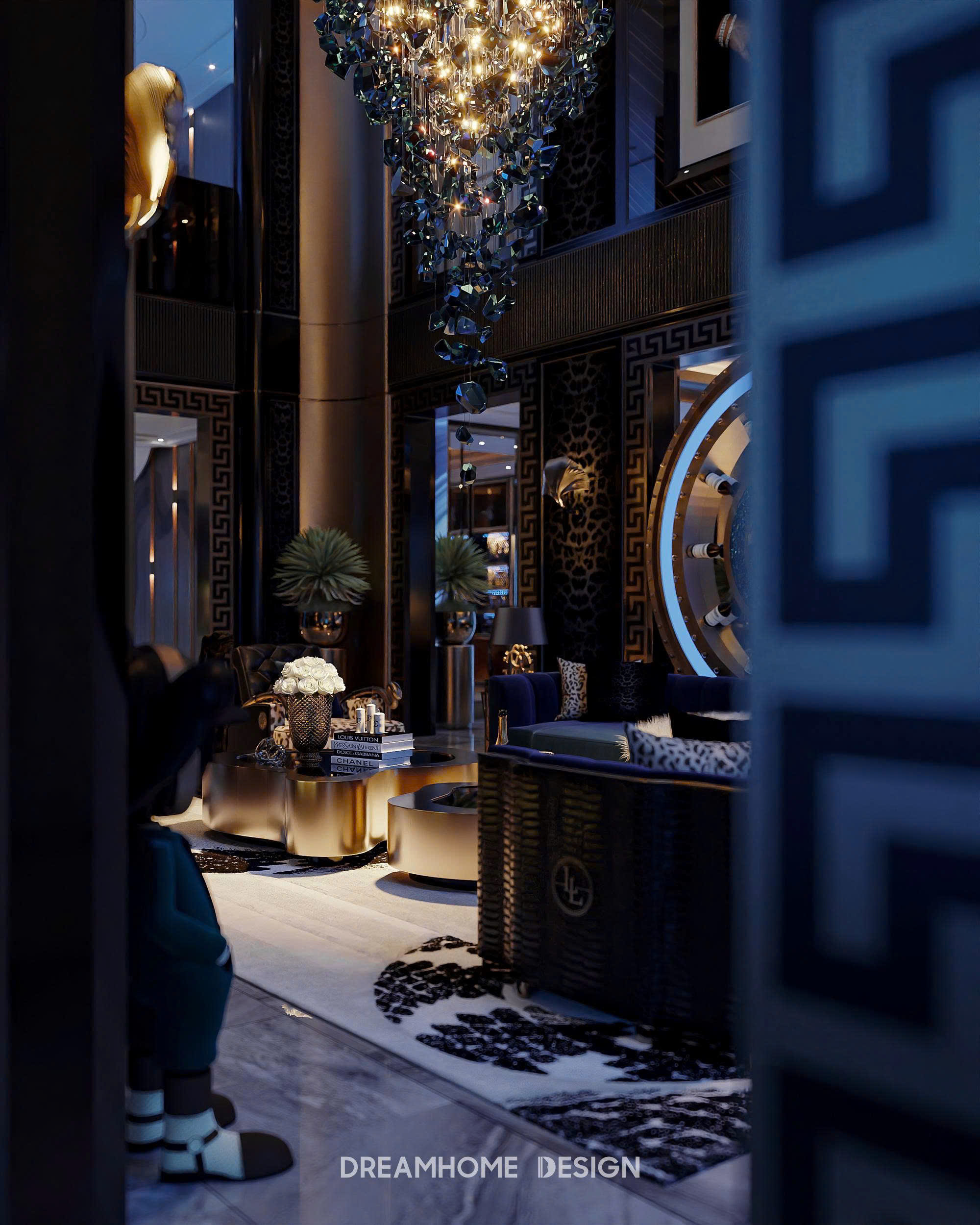 Phong cách Roberto Cavalli trong không gian Hưng Yên Mansion được DreamHome Design thể hiện qua sự hòa quyện giữa chất hoang dã quyến rũ và tinh thần xa hoa Ý. Những họa tiết da thú, đường cong mềm mại cùng sắc ánh kim lấp lánh tạo nên cảm giác quyền lực nhưng vẫn phóng khoáng. Mỗi chi tiết nội thất như kể một câu chuyện về đam mê, bản lĩnh và sự táo bạo – đúng tinh thần Roberto Cavalli, nơi sang trọng không chỉ để ngắm nhìn mà còn để sống trọn trong cảm xúc.
