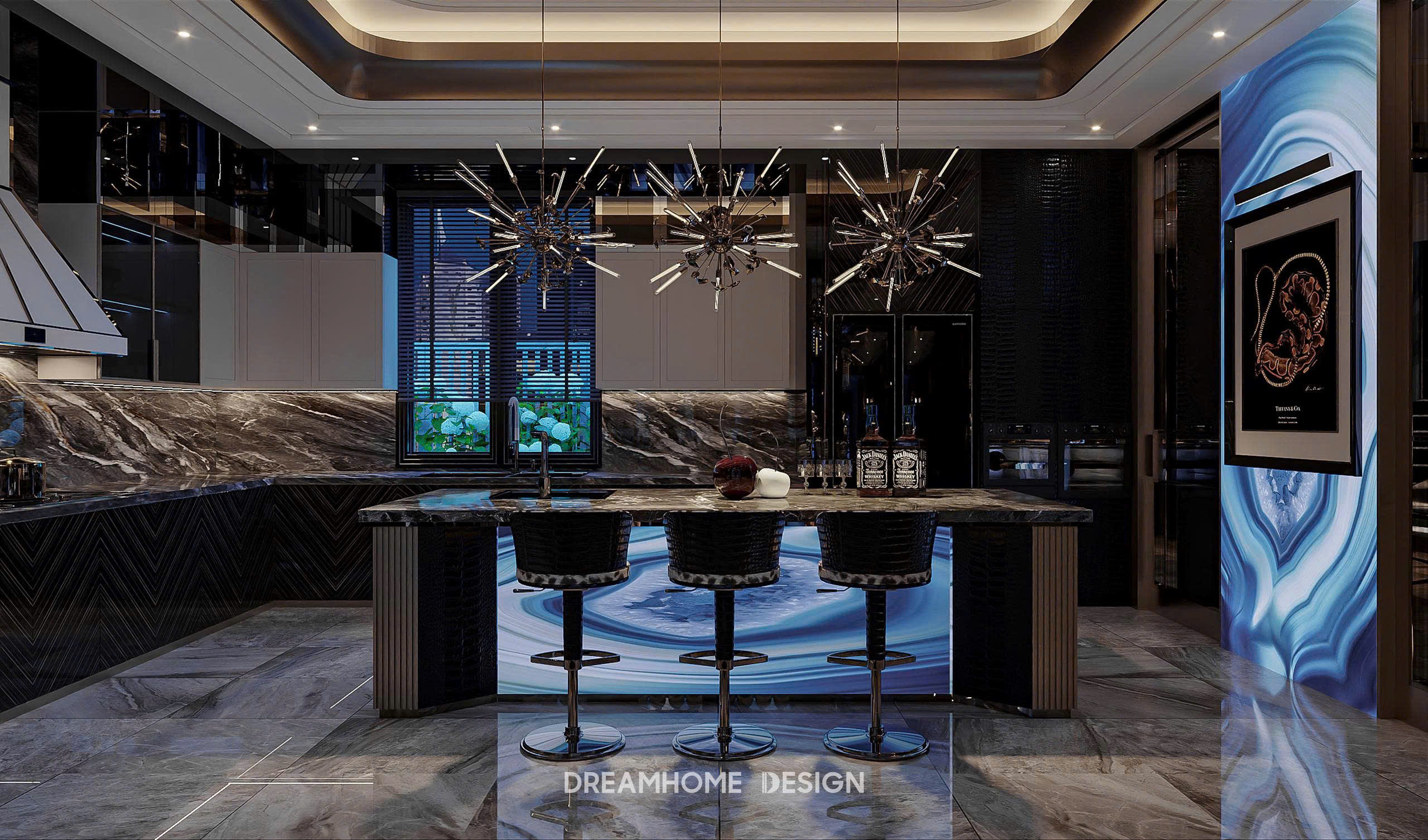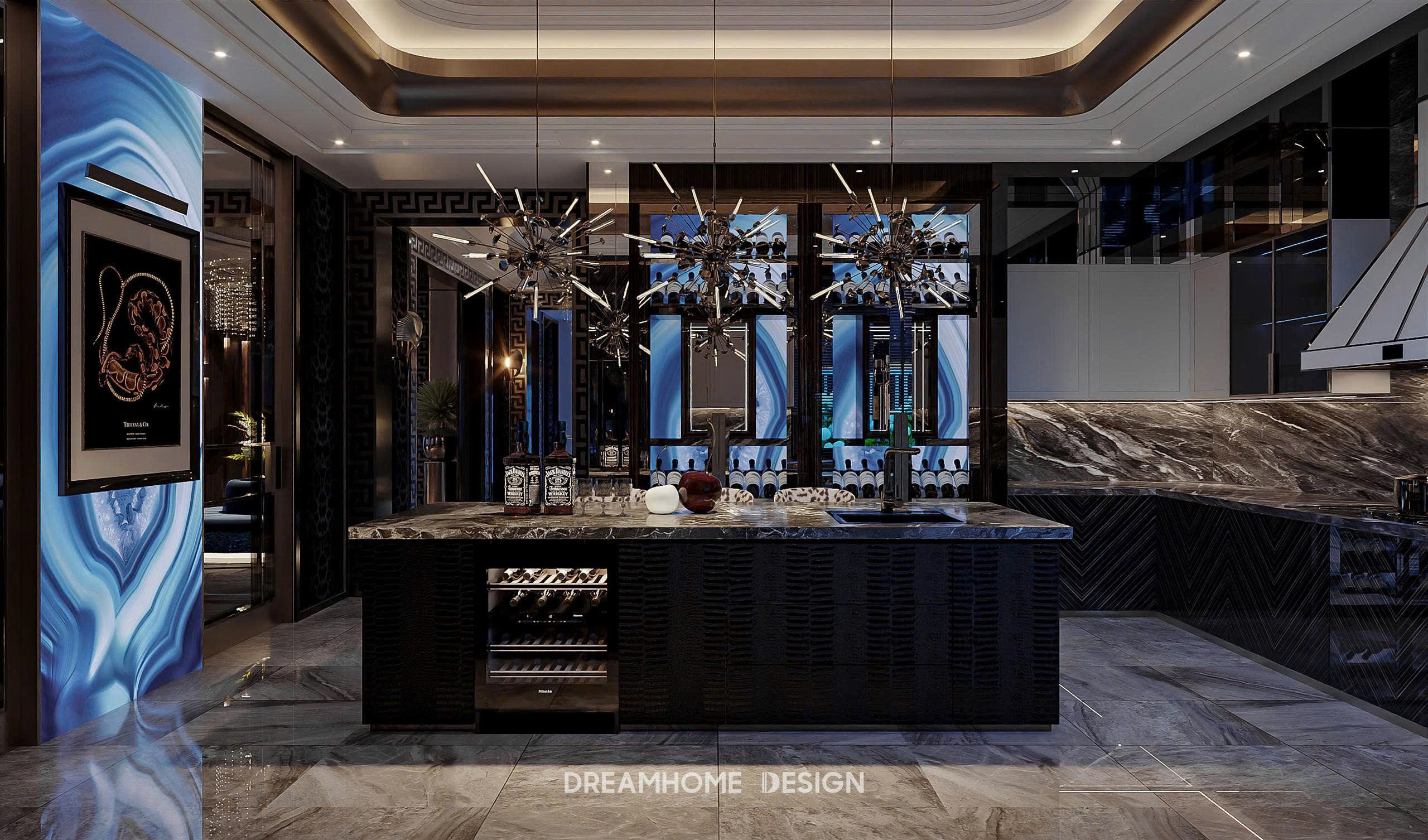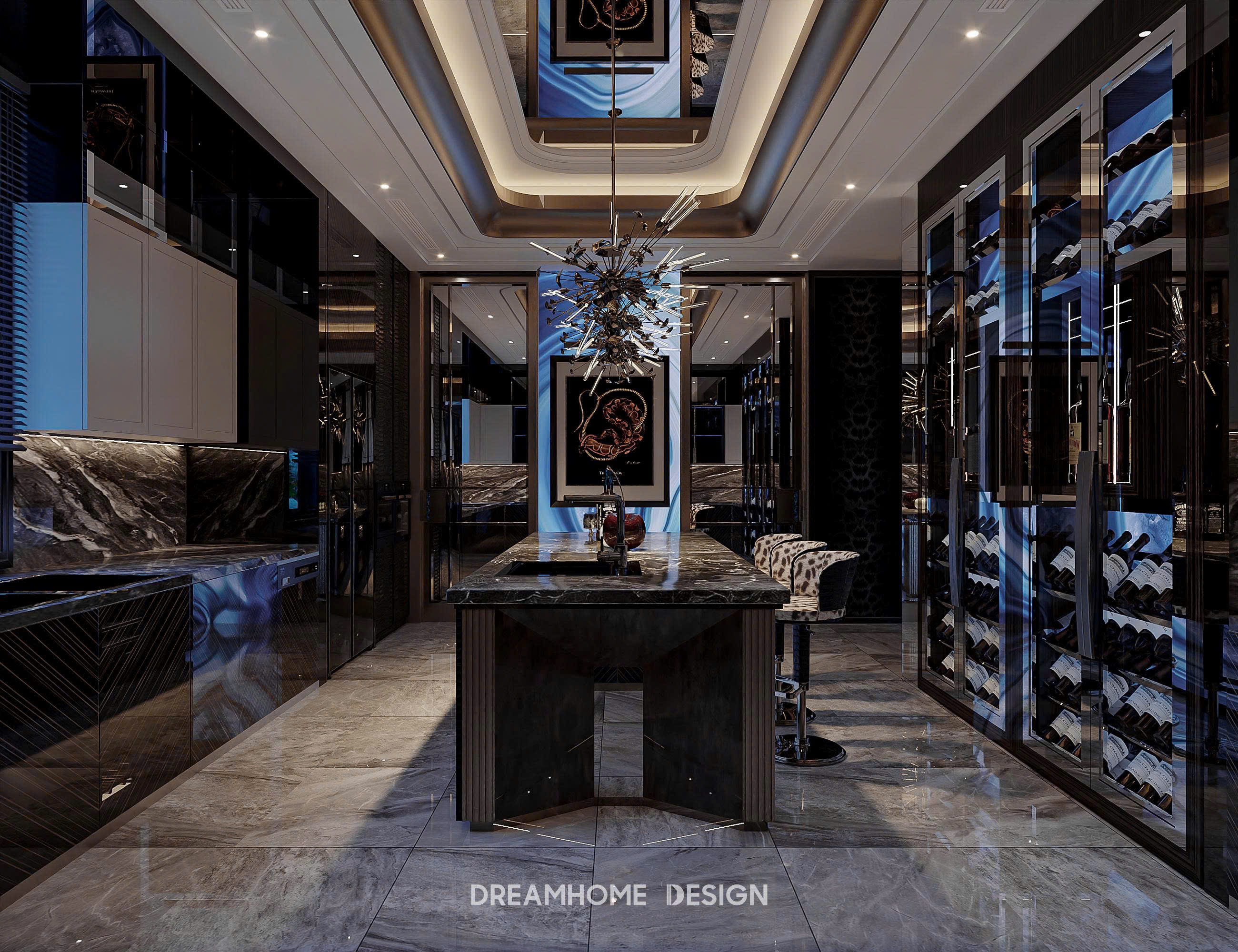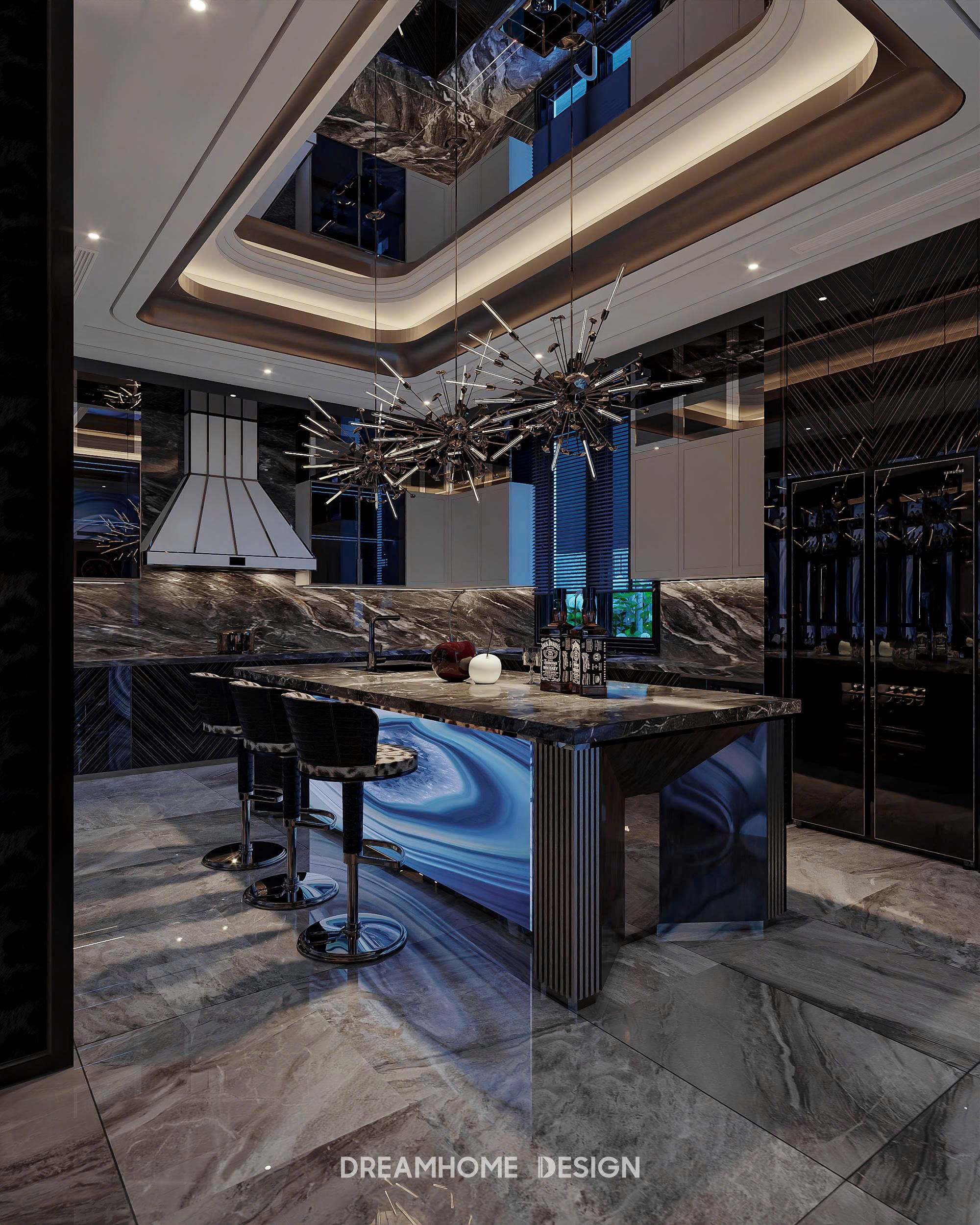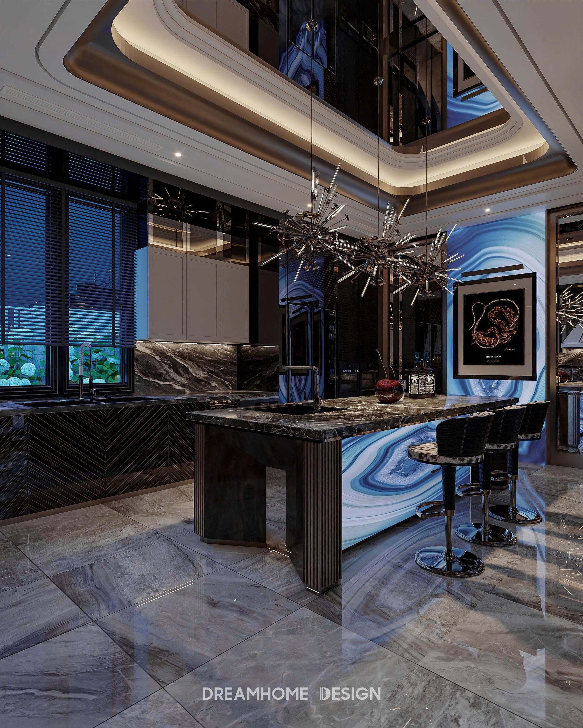 Khoác lên mình gam xanh trầm bí ẩn, không gian Hưng Yên Mansion được DreamHome Design kiến tạo như một tác phẩm nghệ thuật sống, nơi ánh sáng và chất liệu hòa quyện tạo nên bức tranh của sự xa hoa và đẳng cấp. Từng chi tiết, từ mảng tường ốp, đường phào chỉ cho đến món đồ decor nhỏ nhất đều được chọn lọc kỹ lưỡng để thể hiện rõ tinh thần quyền quý của gia chủ.