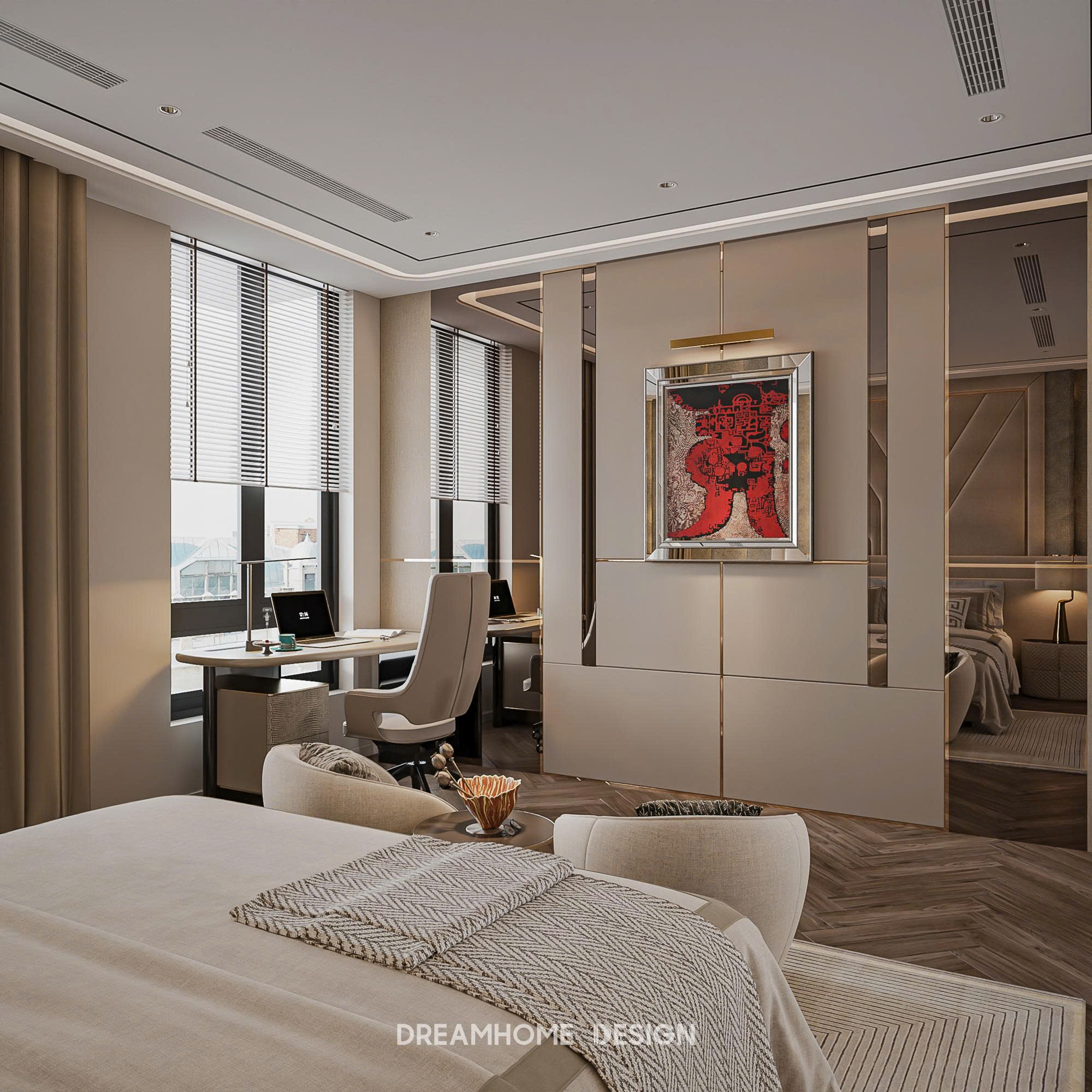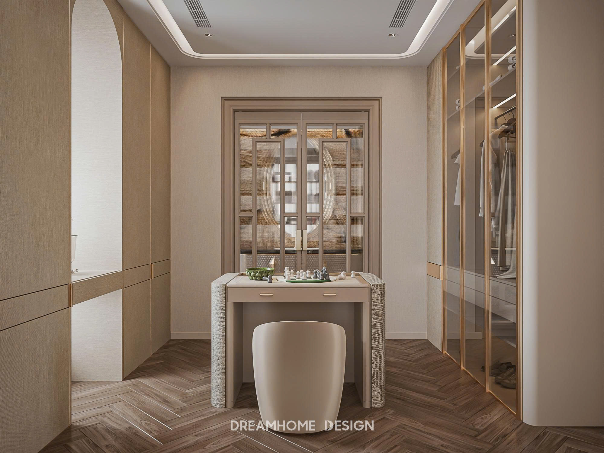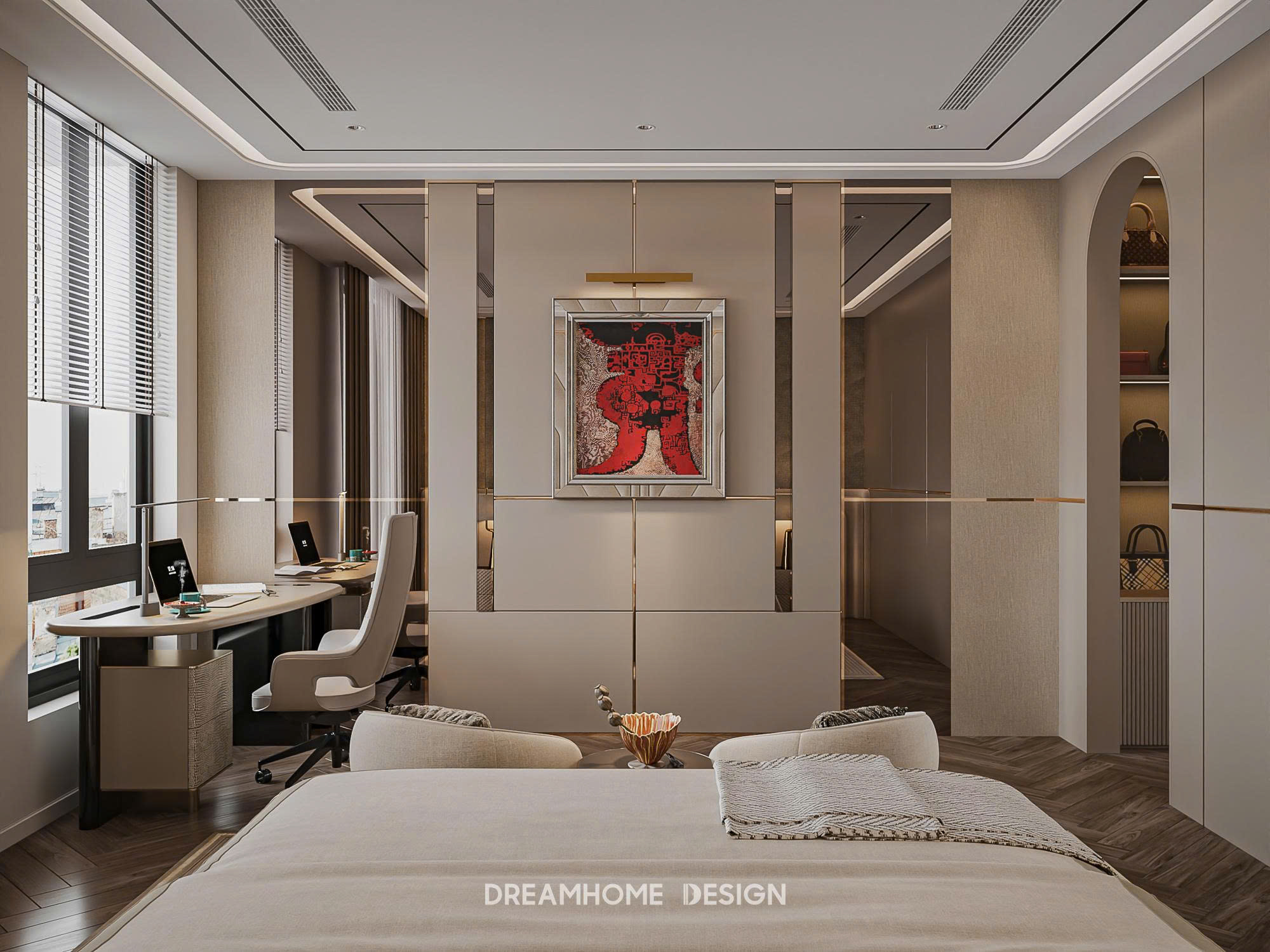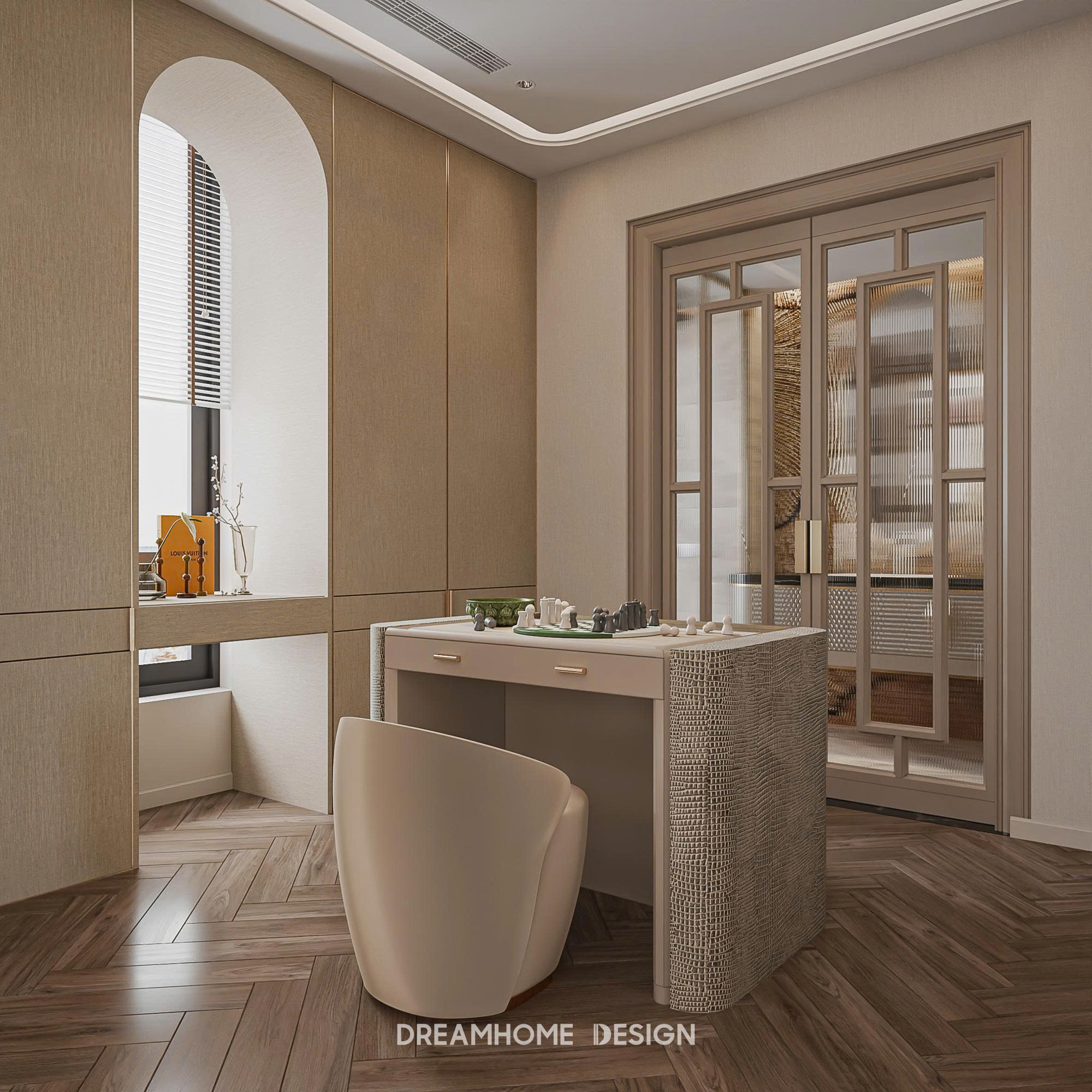 Dưới bàn tay của DreamHome Design, từng món nội thất đều được lựa chọn và bố trí có chủ đích, giữ cho tổng thể luôn cân bằng và hài hòa. Không gian không phô diễn sự xa hoa, mà chinh phục cảm xúc bằng sự êm ái, trầm tĩnh và chỉn chu. Khi bước vào, người ta dễ dàng cảm nhận được sự thư thái lan tỏa, như được tạm rời khỏi nhịp sống vội vã để tận hưởng một khoảng an yên, tinh tế và đủ đầy trong chính tổ ấm của mình.