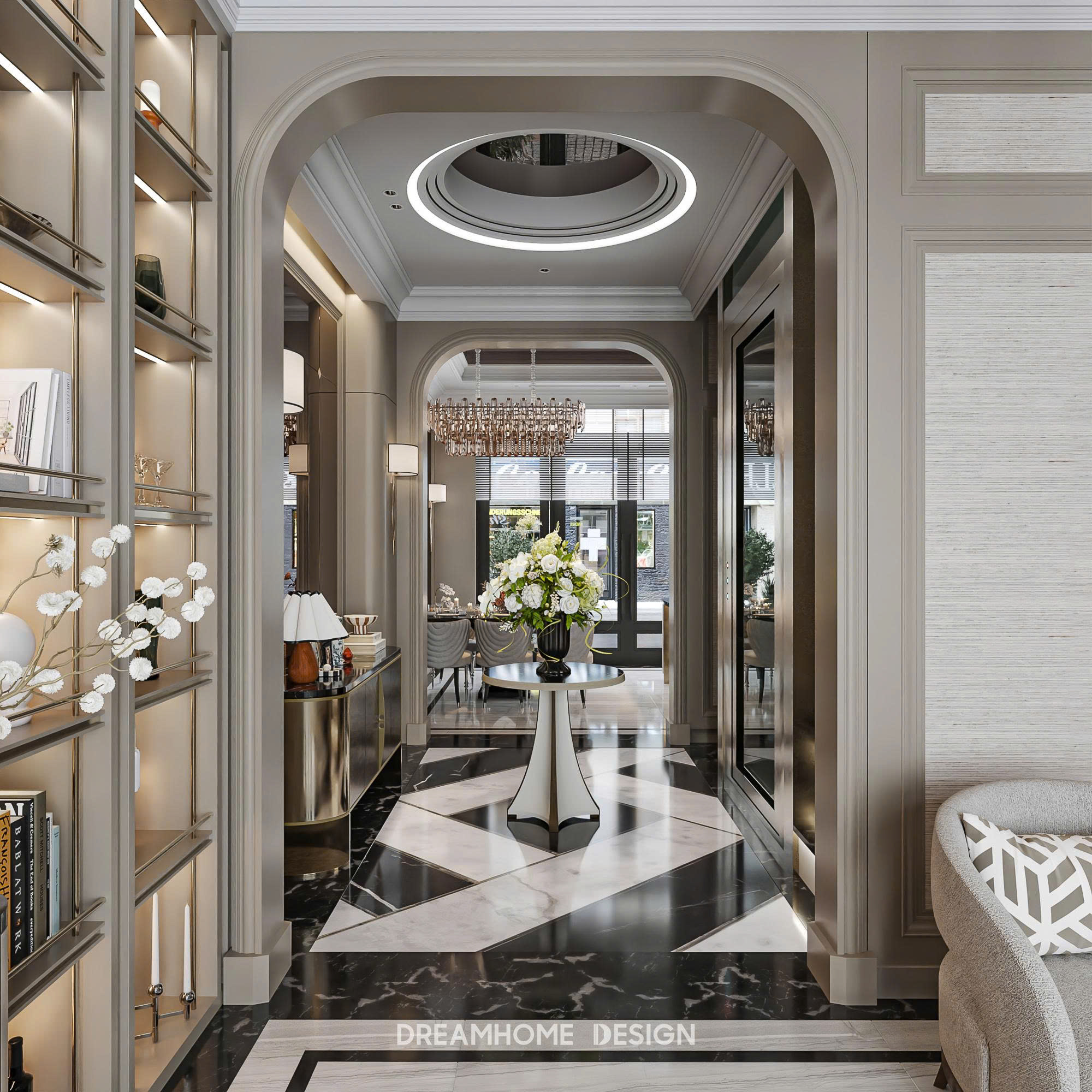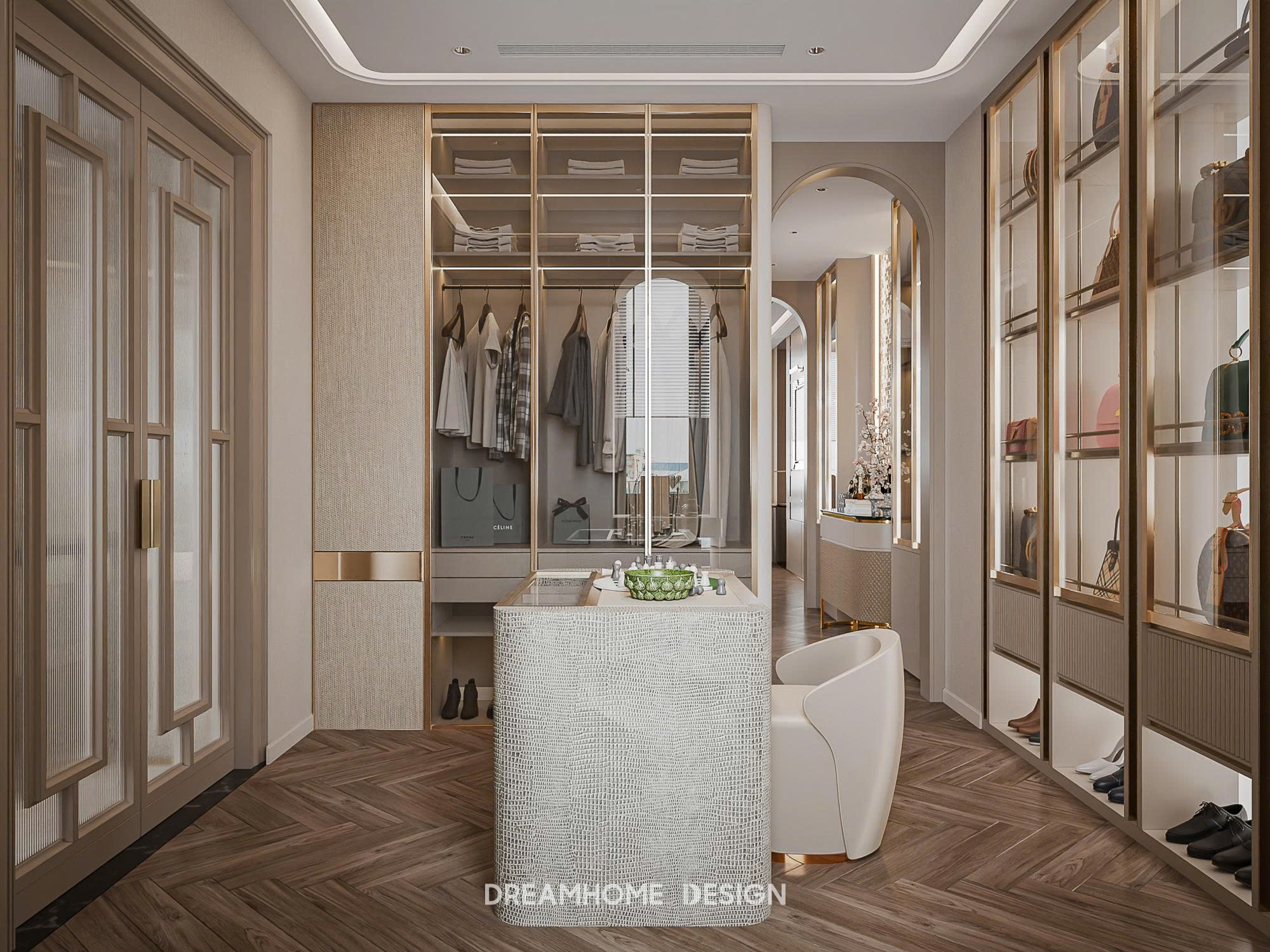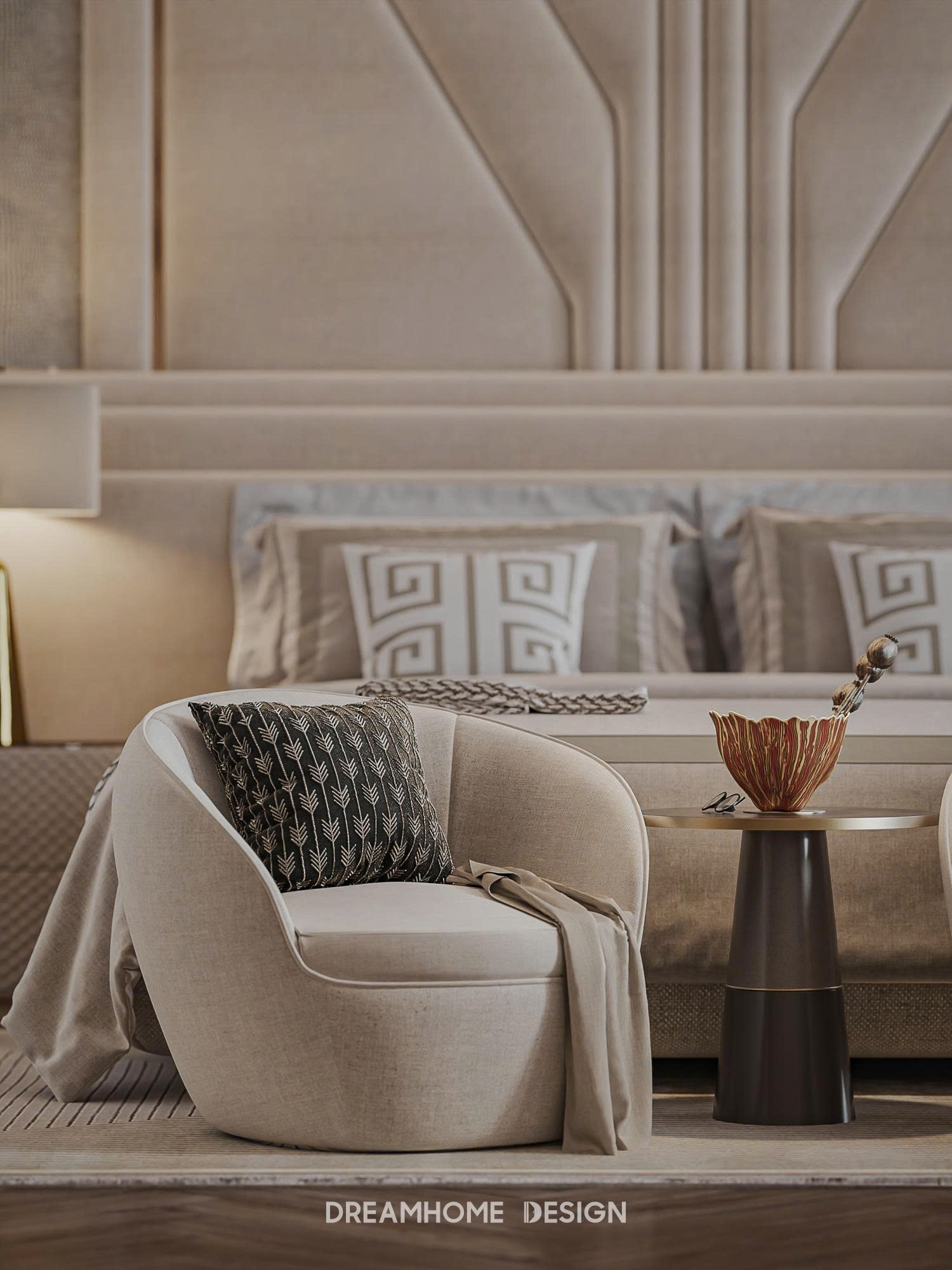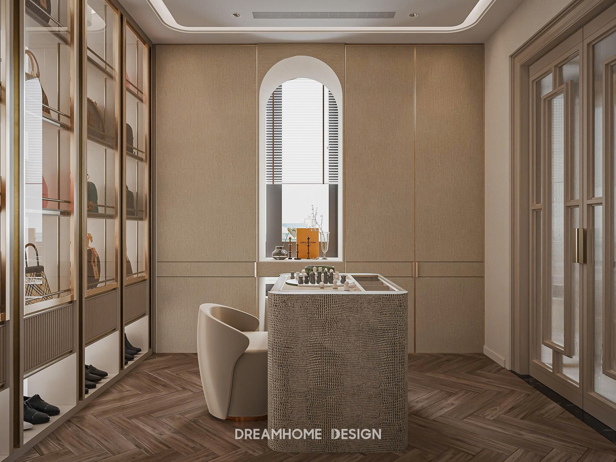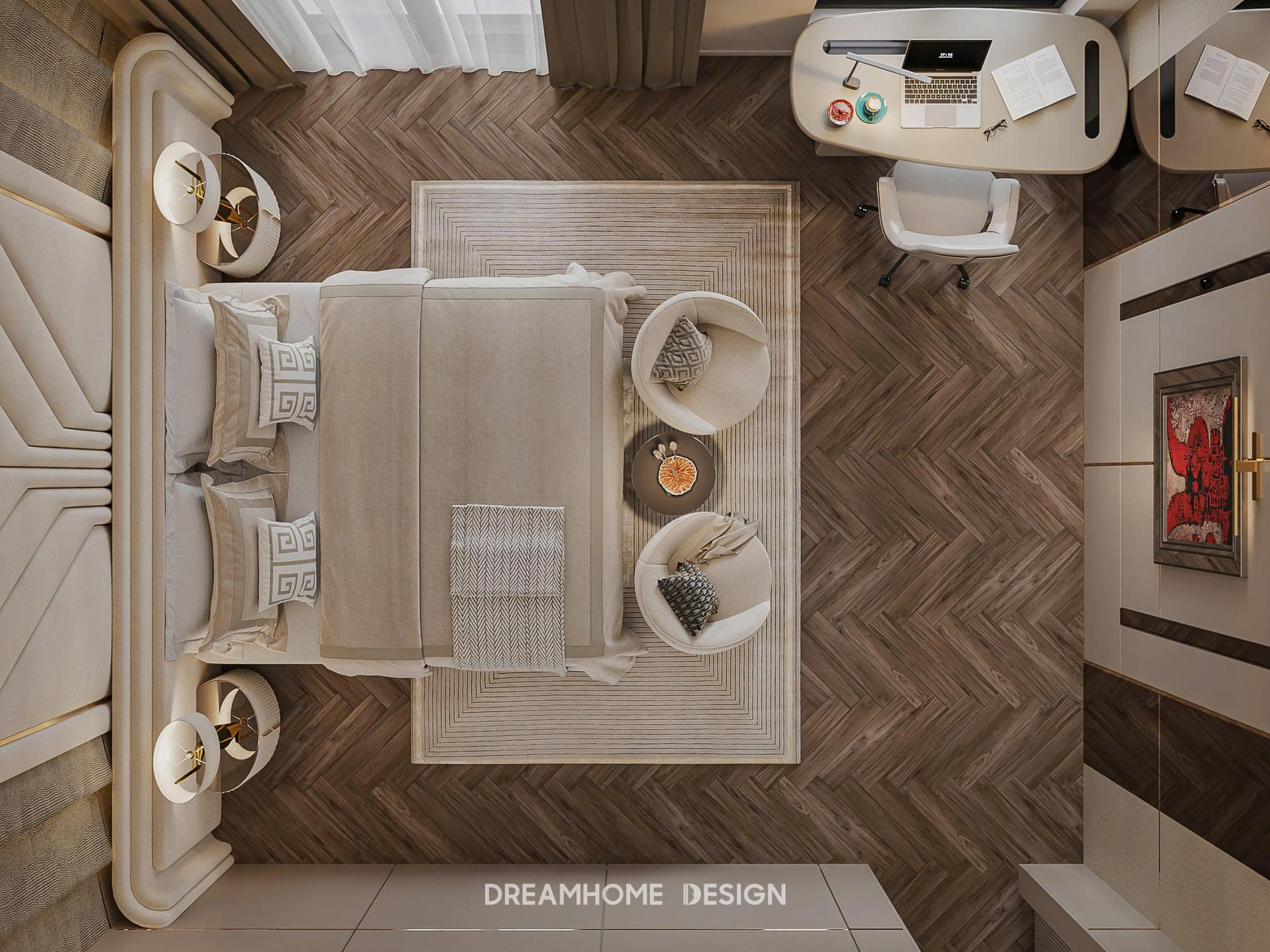 Dưới bàn tay của DreamHome Design, từng món nội thất đều được lựa chọn và bố trí có chủ đích, giữ cho tổng thể luôn cân bằng và hài hòa. Không gian không phô diễn sự xa hoa, mà chinh phục cảm xúc bằng sự êm ái, trầm tĩnh và chỉn chu. Khi bước vào, người ta dễ dàng cảm nhận được sự thư thái lan tỏa, như được tạm rời khỏi nhịp sống vội vã để tận hưởng một khoảng an yên, tinh tế và đủ đầy trong chính tổ ấm của mình.