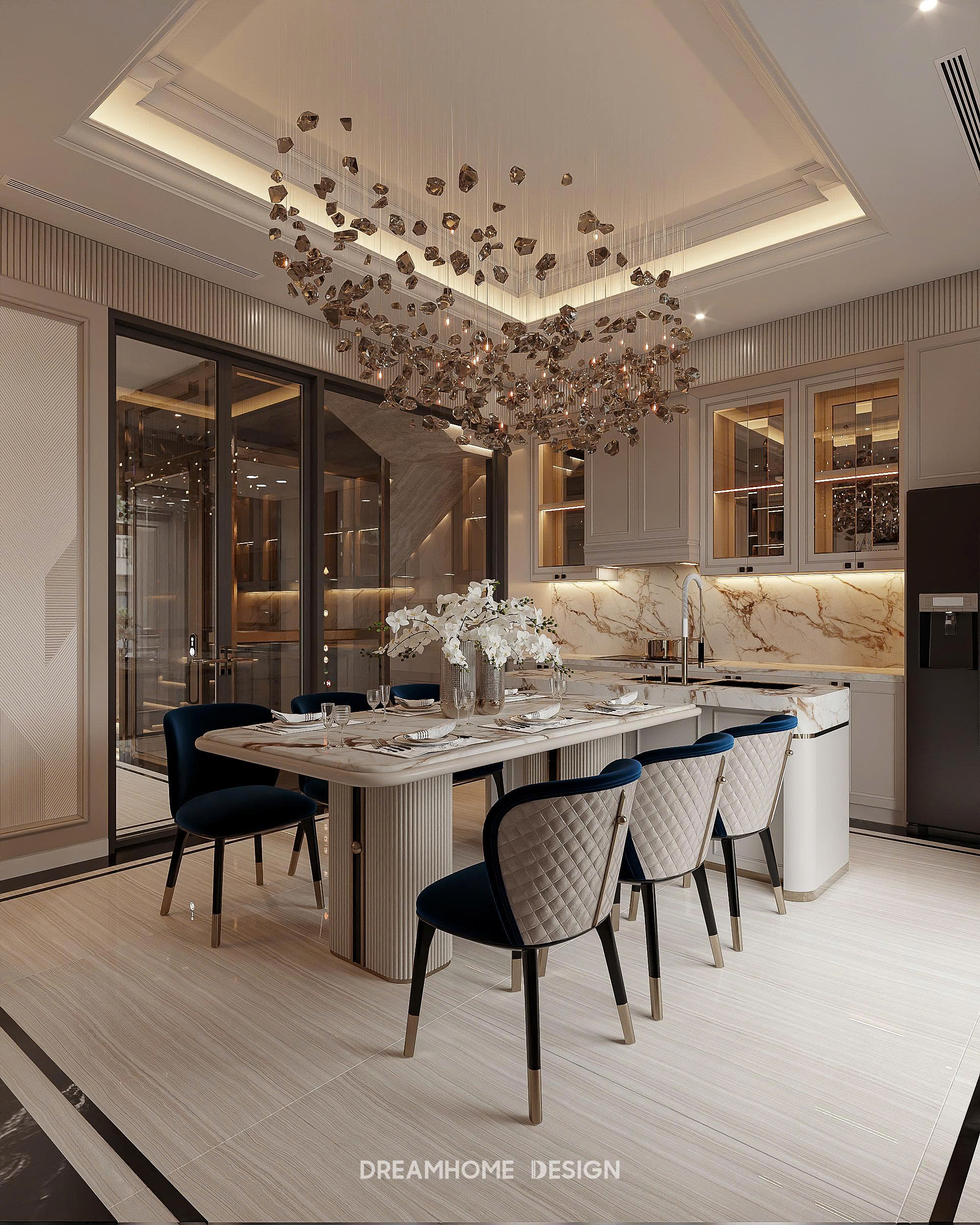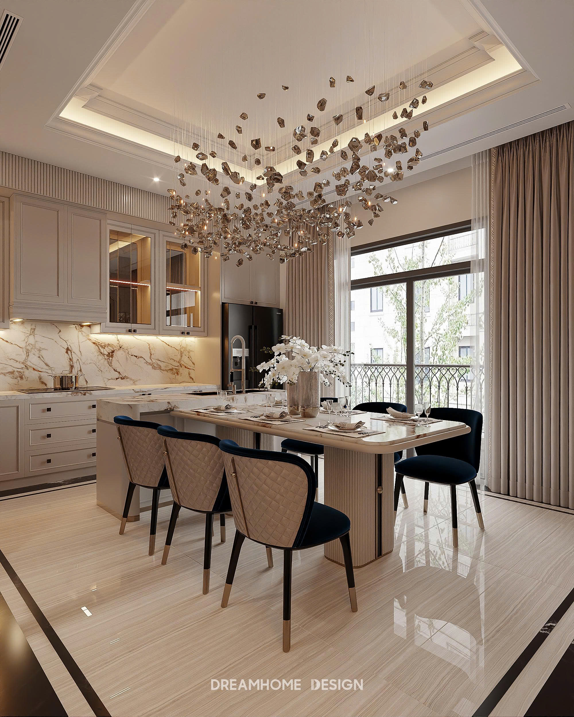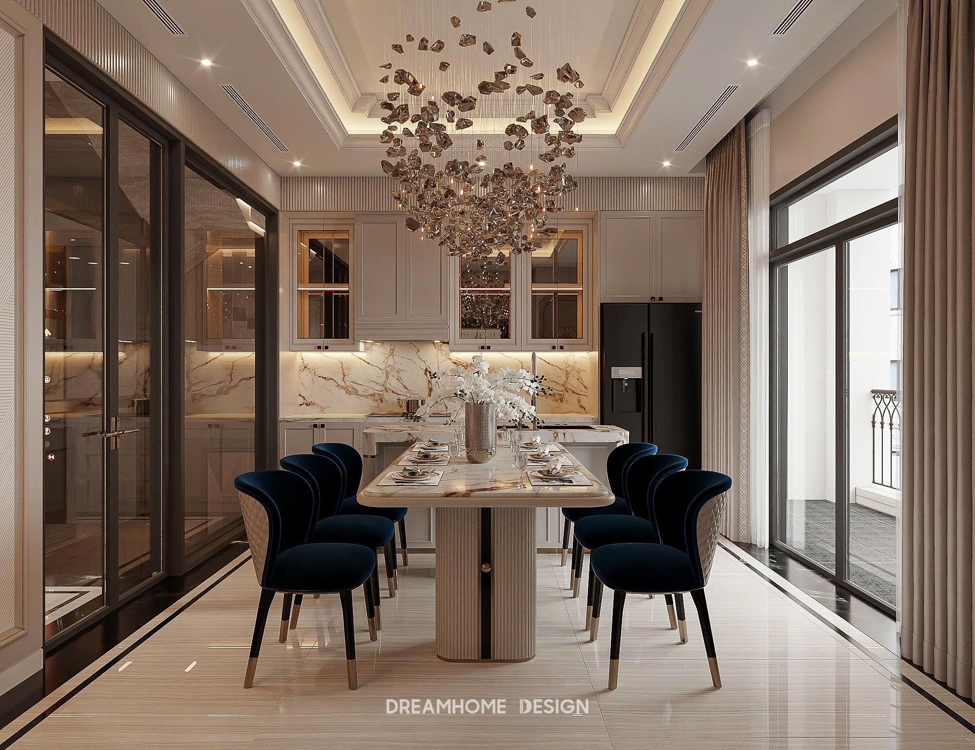 Phòng khách rộng mở, đón ánh sáng tự nhiên, trở thành nơi kết nối các thành viên trong gia đình một cách tự nhiên. Khu bếp và bàn ăn được sắp xếp liền mạch, vừa gọn gàng vừa thuận tiện cho sinh hoạt hàng ngày. Mọi chi tiết không hướng đến sự cầu kỳ, mà tập trung vào cảm giác thoải mái khi sử dụng. Tổng thể không gian mang lại một nhịp sống chậm rãi, nơi mỗi lần trở về không chỉ là nghỉ ngơi, mà là thực sự được tận hưởng trọn vẹn sự bình yên trong chính ngôi nhà của mình.