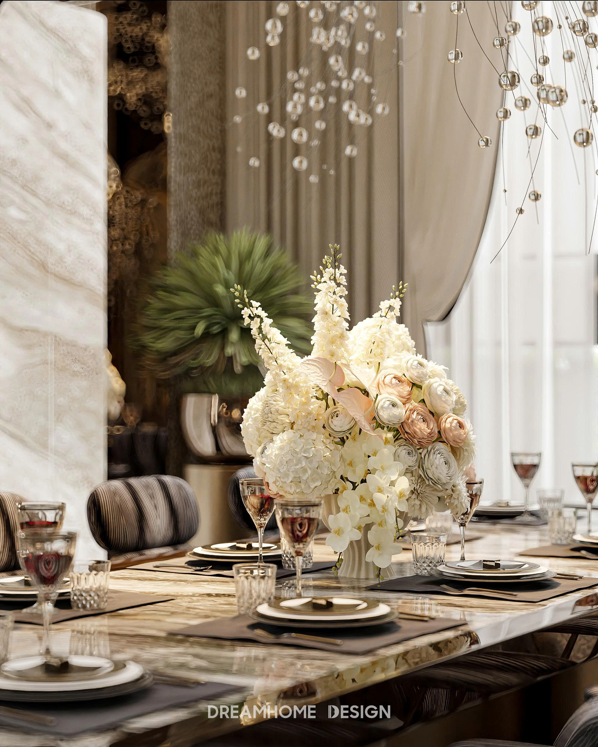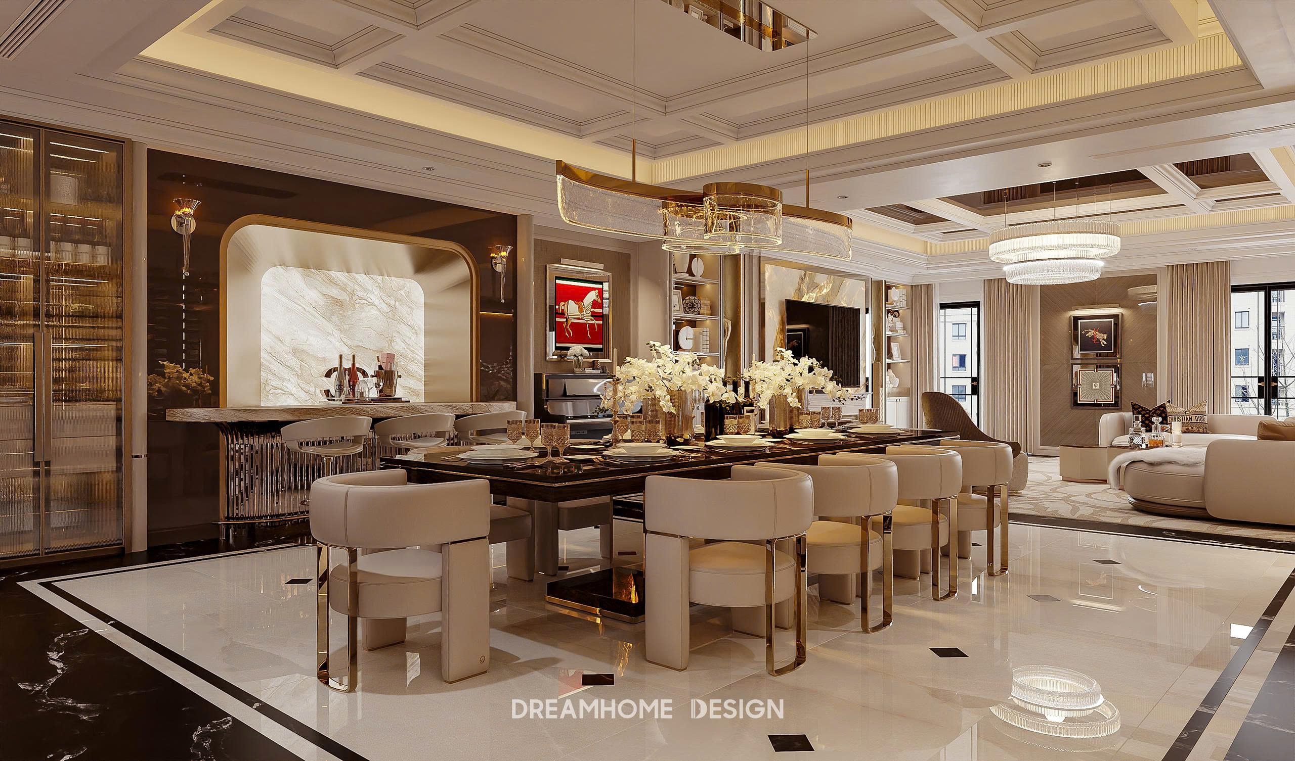 Đá marble vân tự nhiên, gỗ quý, da thật, kim loại mạ cao cấp và các tác phẩm nghệ thuật được chọn lọc kỹ lưỡng để tạo điểm nhấn. Mỗi không gian không chỉ đẹp mà còn mang dấu ấn riêng, phản ánh rõ phong cách sống, gu thẩm mỹ và đẳng cấp của chủ nhân.