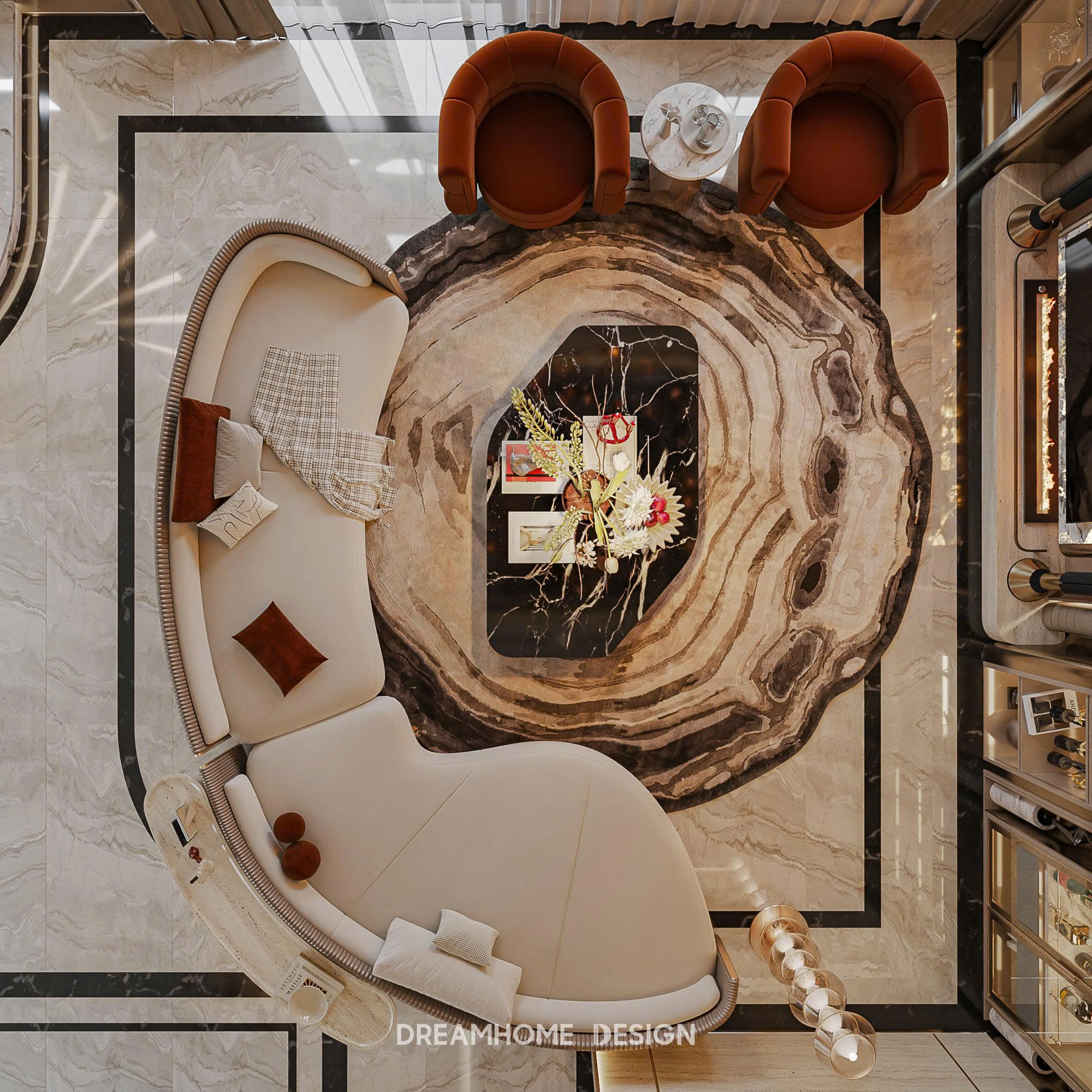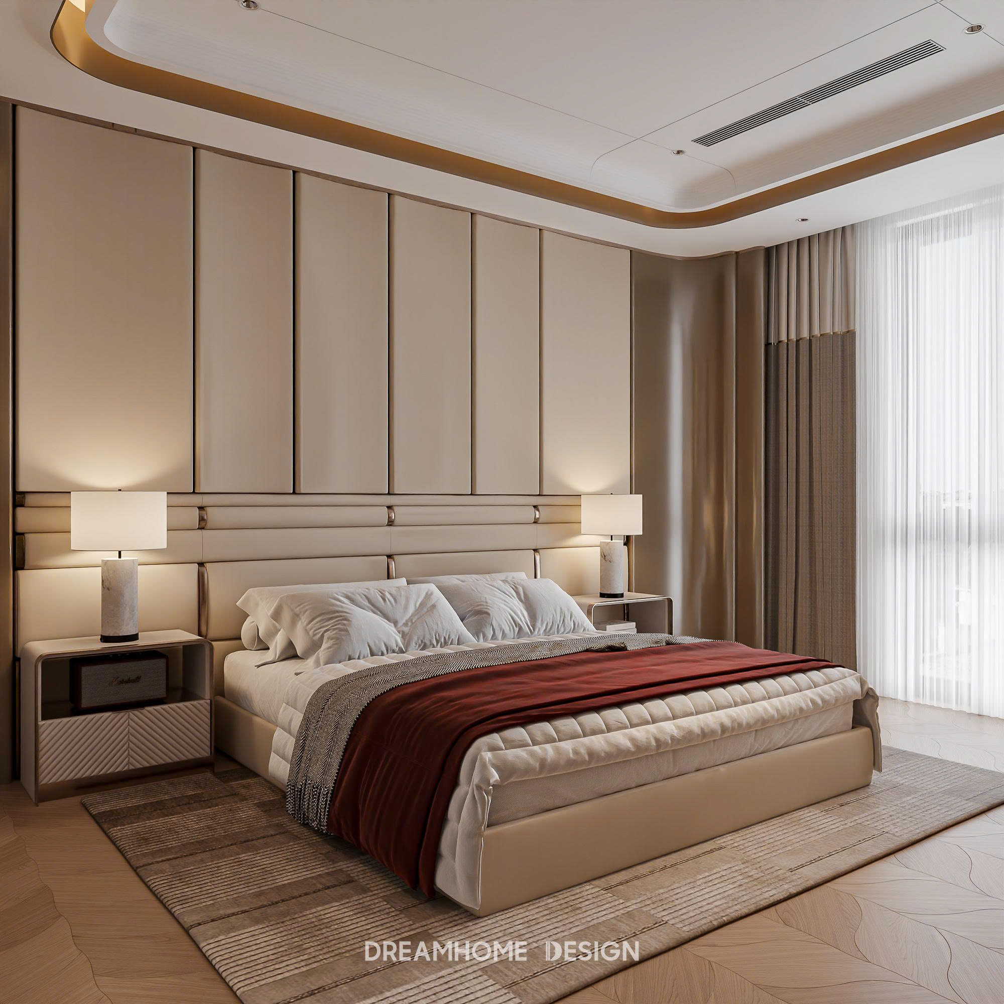 Hệ tủ âm tường, nội thất đa năng, các mảng trần bo cong hay vách ngăn nhẹ giúp không gian mềm mại, liền mạch và dễ chịu. Nhờ vậy, dù là biệt thự hay nhà liền kề, ngôi nhà vẫn mang tinh thần nghỉ dưỡng, nơi mỗi bước chân đều nhẹ nhàng và thư thái.