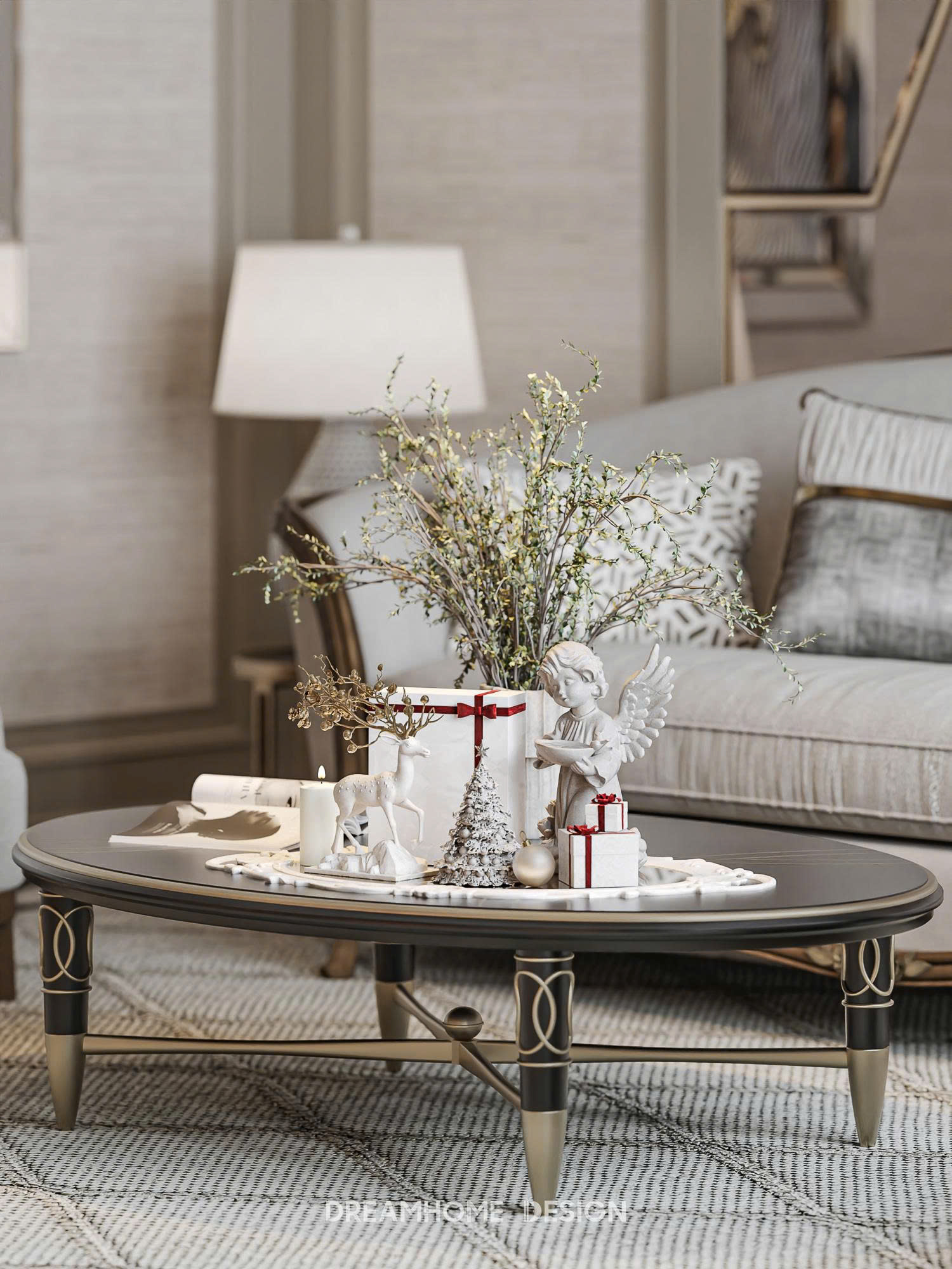 Trong thiết kế nội thất siêu sang, ánh sáng không chỉ để chiếu sáng, mà để tạo cảm xúc. Tại Vinhomes Cổ Loa, ánh sáng tự nhiên luôn được ưu tiên tối đa qua hệ cửa lớn, rèm mỏng và trần cao. Ánh sáng nhân tạo được chia lớp rõ ràng: ánh sáng tổng thể, ánh sáng điểm và ánh sáng trang trí. Sự kết hợp này giúp không gian luôn có chiều sâu, thay đổi cảm xúc theo từng thời điểm trong ngày.
